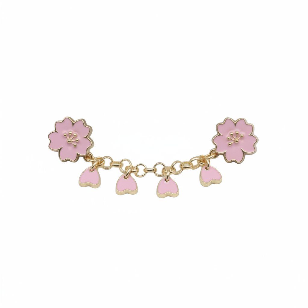 Embrace the fleeting beauty of spring with our Eternal Sakura Blossom Jibbitz collection. Inspired by the delicate cherry blossoms of Japan, this curated selection of floral charms features soft pink enamel, gold-toned hardware, and shimmering pearl accents. Perfect for adding a romantic, feminine touch to your favorite clogs.